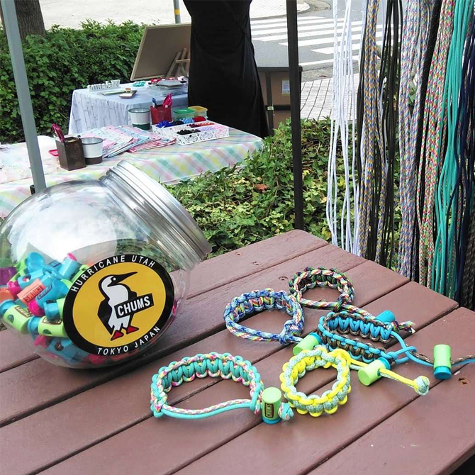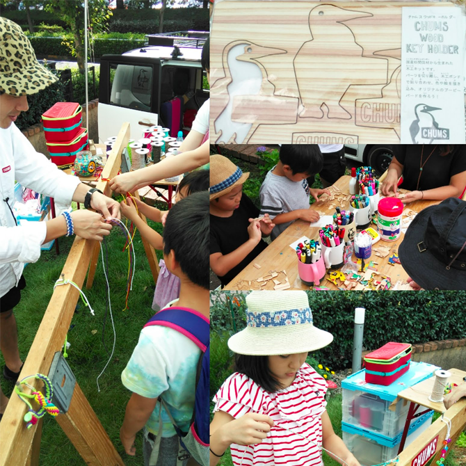 タイダイ染め体験、万華鏡づくり、パラコードワークショップ、CHUMSとのコラボワークショップなど