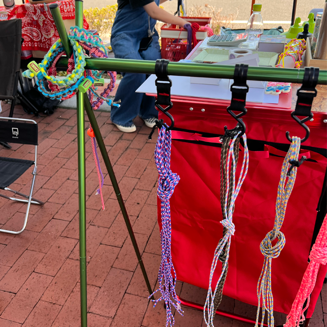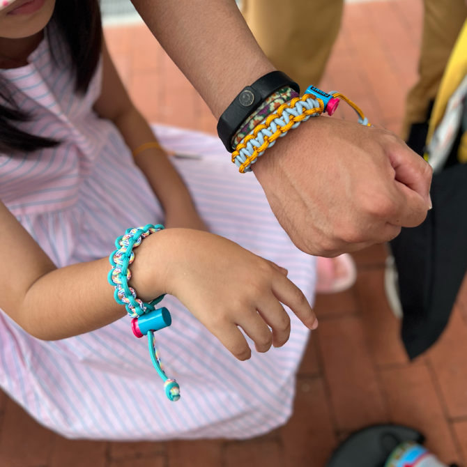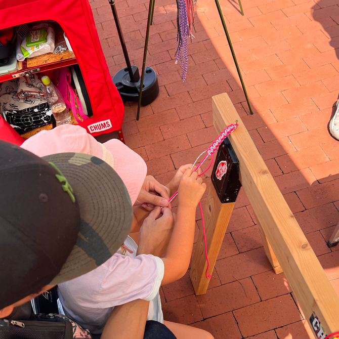 パラコードを使ったブレスレットづくりは大人気で親子でお揃いにしたりファミリーで楽しんでいただいてます